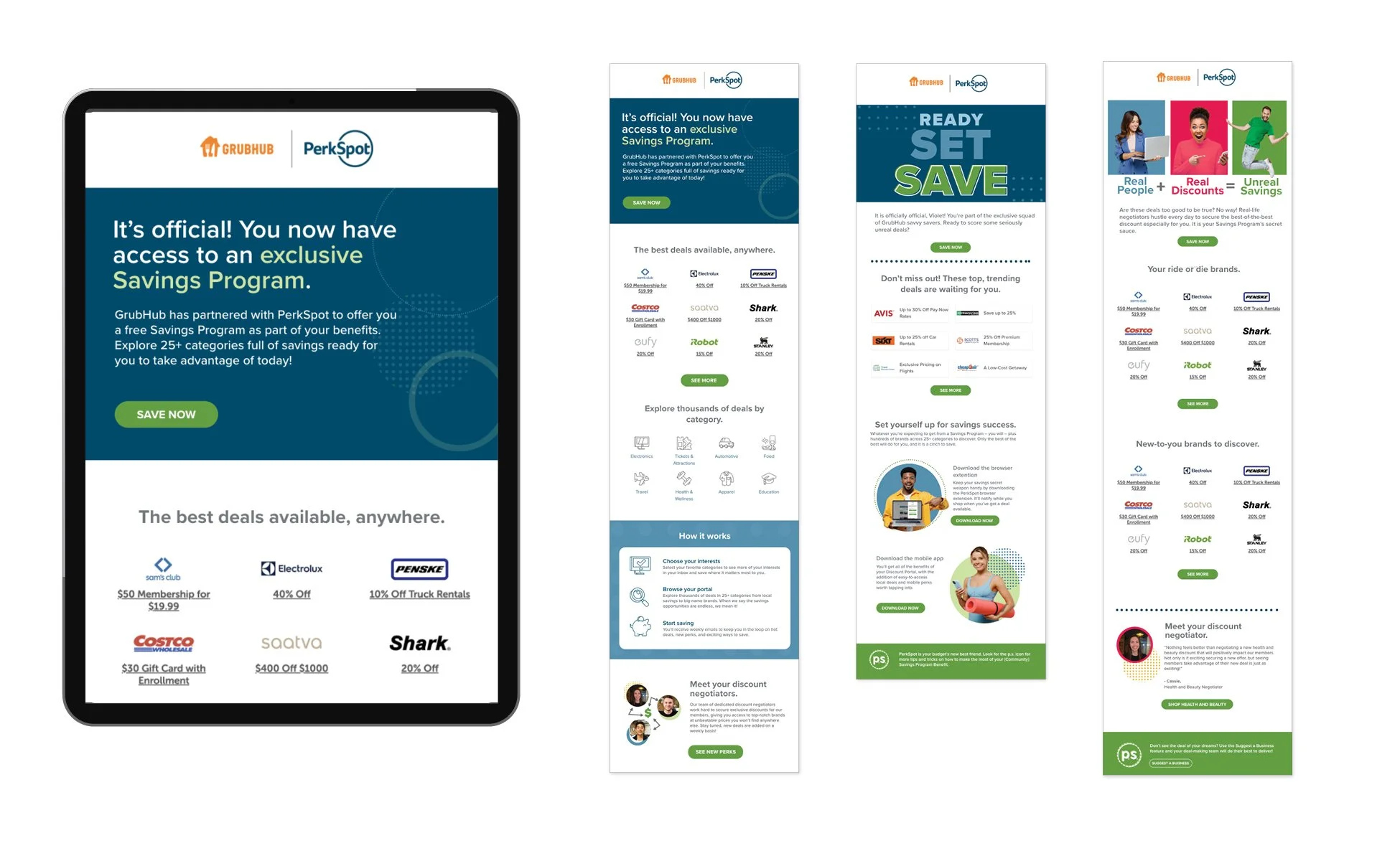 A series of welcome emails that new members receive when their company signs up with PerkSpot. Goal is to show them breadth of deals, and merchant offerings and get members to interact with the PerkSpot site.