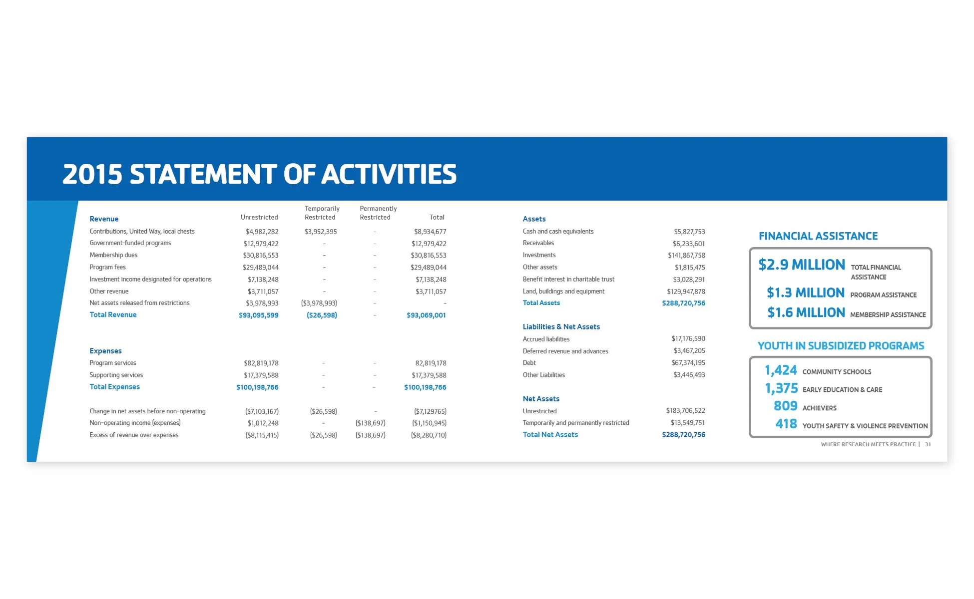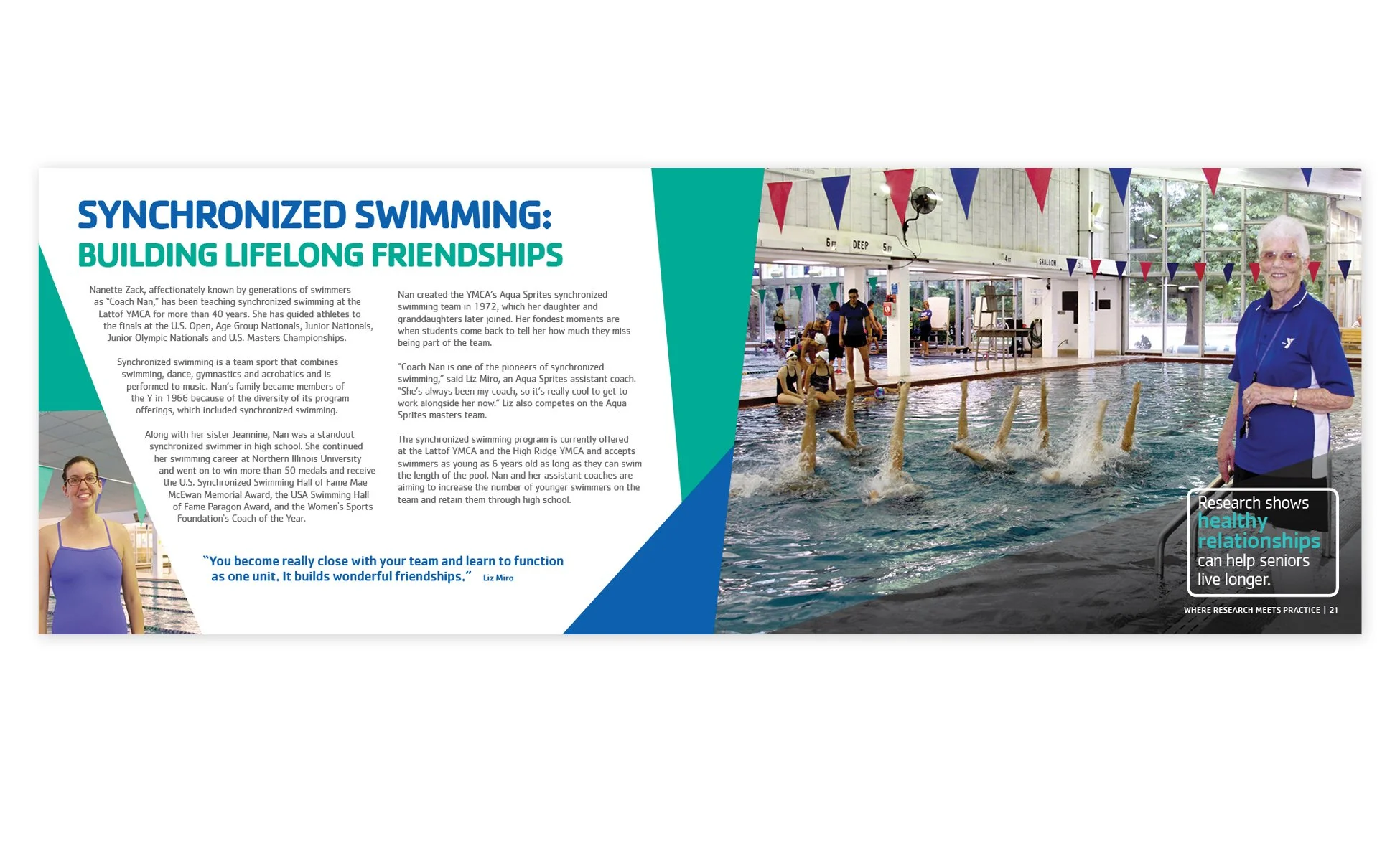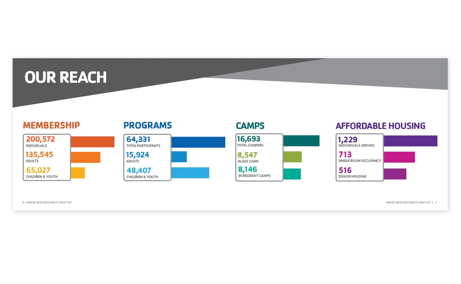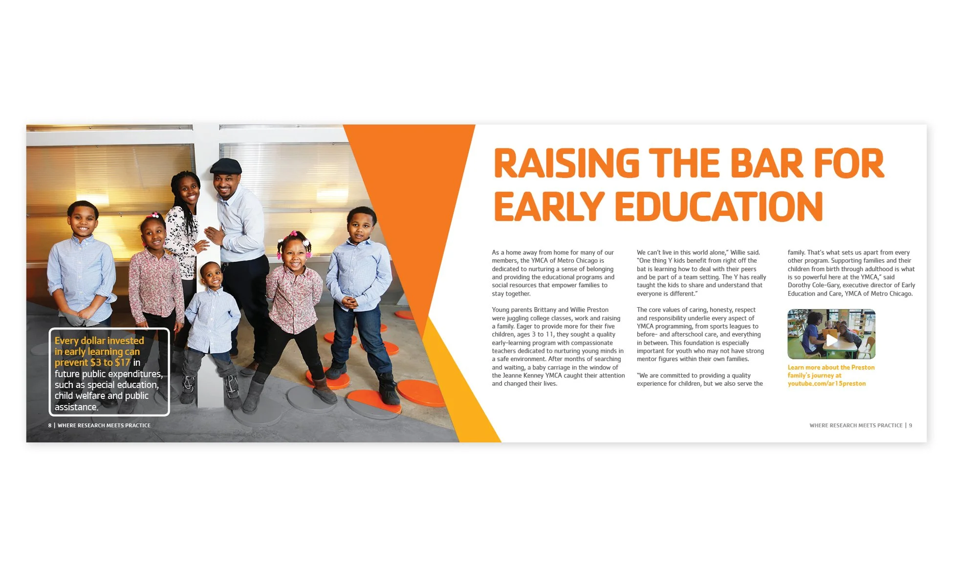 The goal of the annual report was to highlight the impact the YMCA had on Chicago through its mission. The mission, focuses on children and families, healthy living, violence prevention, and academic readiness. This was achieved by including member stories and highlighting events and milestones that occurred throughout the year. Within these stories, I visually wove in statistics and informational data to show the impact the Y has made throughout the year.